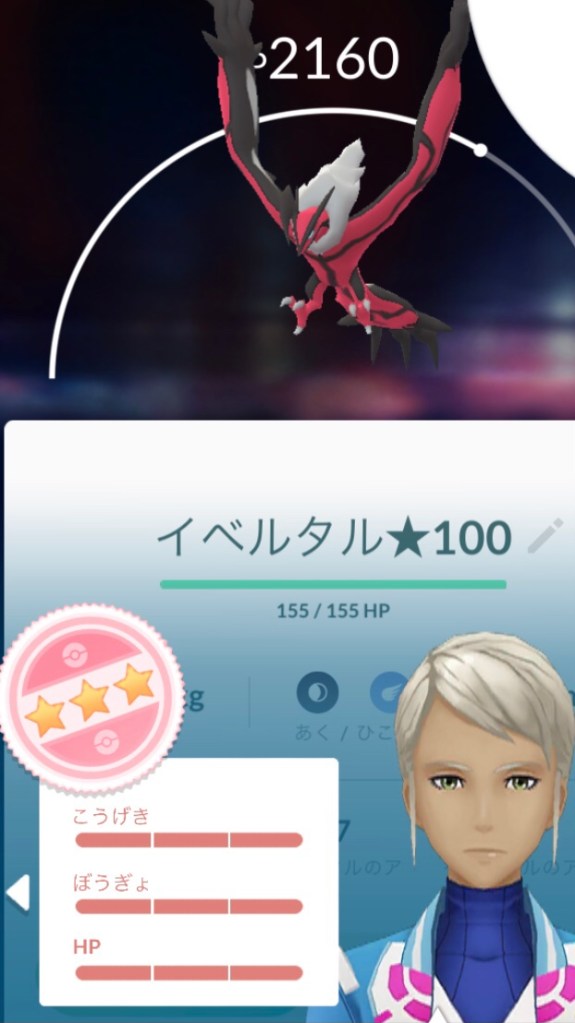 イベルタルにやっと会えました。投げ方がわからない、エクセレントやグレートも決まらないし、何回か球を落としてしまうし、気付いたらラスト一球。