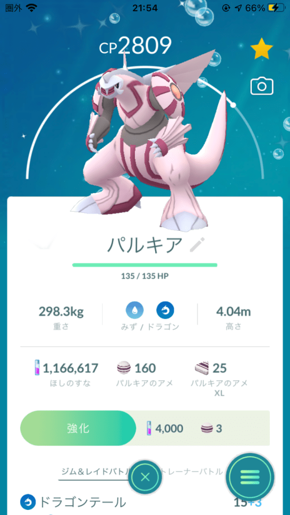 パルキアは色違い5匹、そして念願の個体値MAXが来てくれました!満足です。